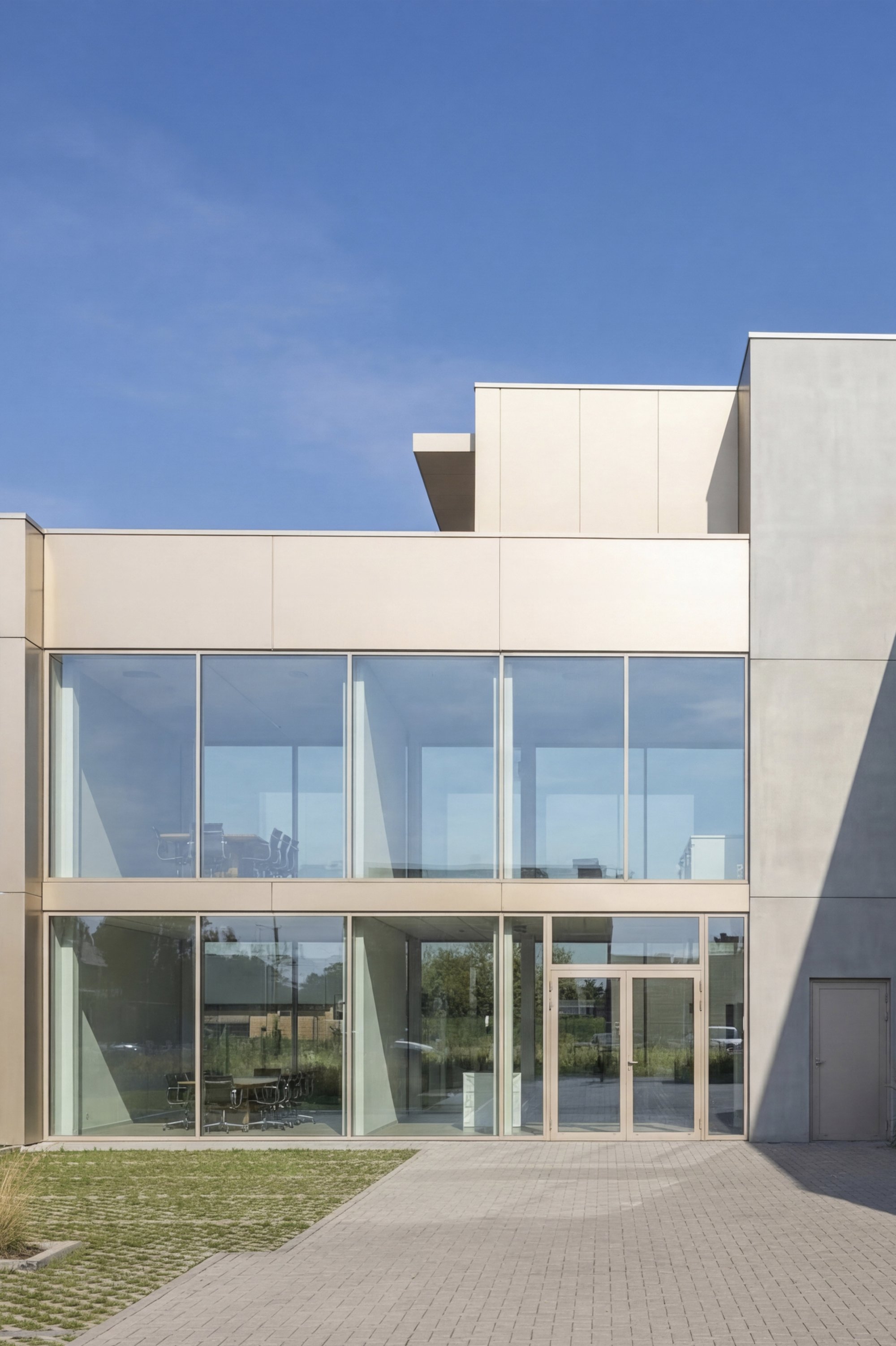 Om deze service verder uit te bouwen, investeert Quantum Heating in een nieuwe opslagloods met kantoren en een showroom op de suikersite in Moerbeke. De kantoren en showroom zijn gericht naar het achterliggende landschap en de Moervaart, wat zorgt voor een aangename en open werkomgeving.